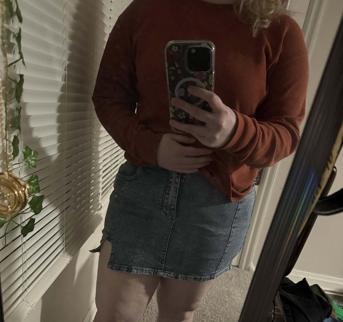 Je porte une grande taille et j'ai du mal à trouver des jupes qui ne me serrent pas. Celle-ci me va parfaitement et ne laisse rien paraître.