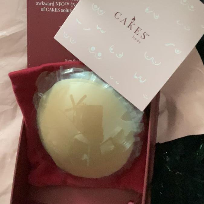 Ottieni una presa morbida senza strappare i capezzoli con Sticky CAKES. Il nostro design in attesa di brevetto è smaltato a mano con adesivo di grado medico attorno a un angolo per capezzoli antiaderente™ per garantire una copertura sicura senza strappare i capezzoli.
