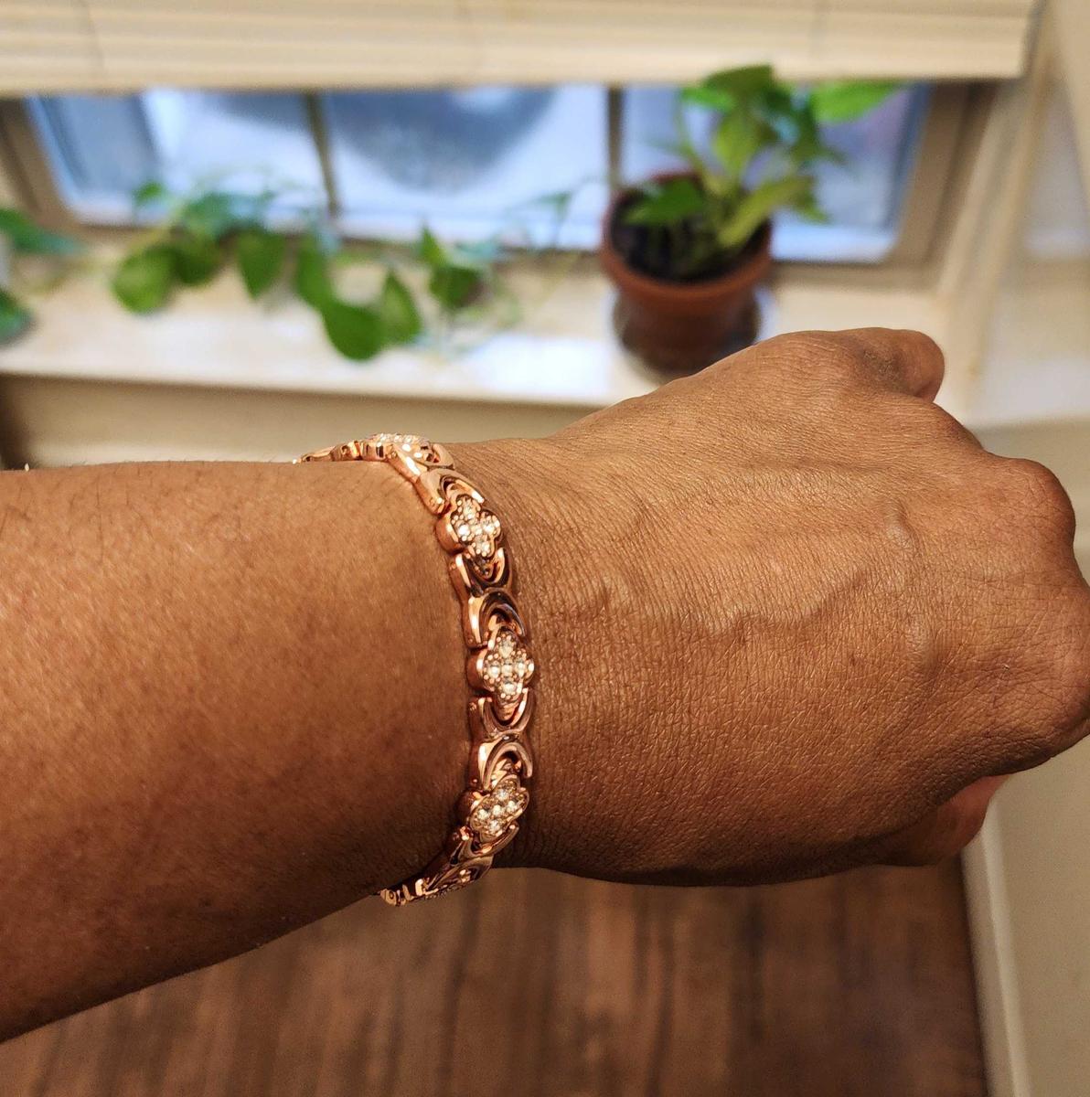 Pulsera de cobre magnético con diseño floral, que aporta armonía al cuerpo y estilo a tu vida.