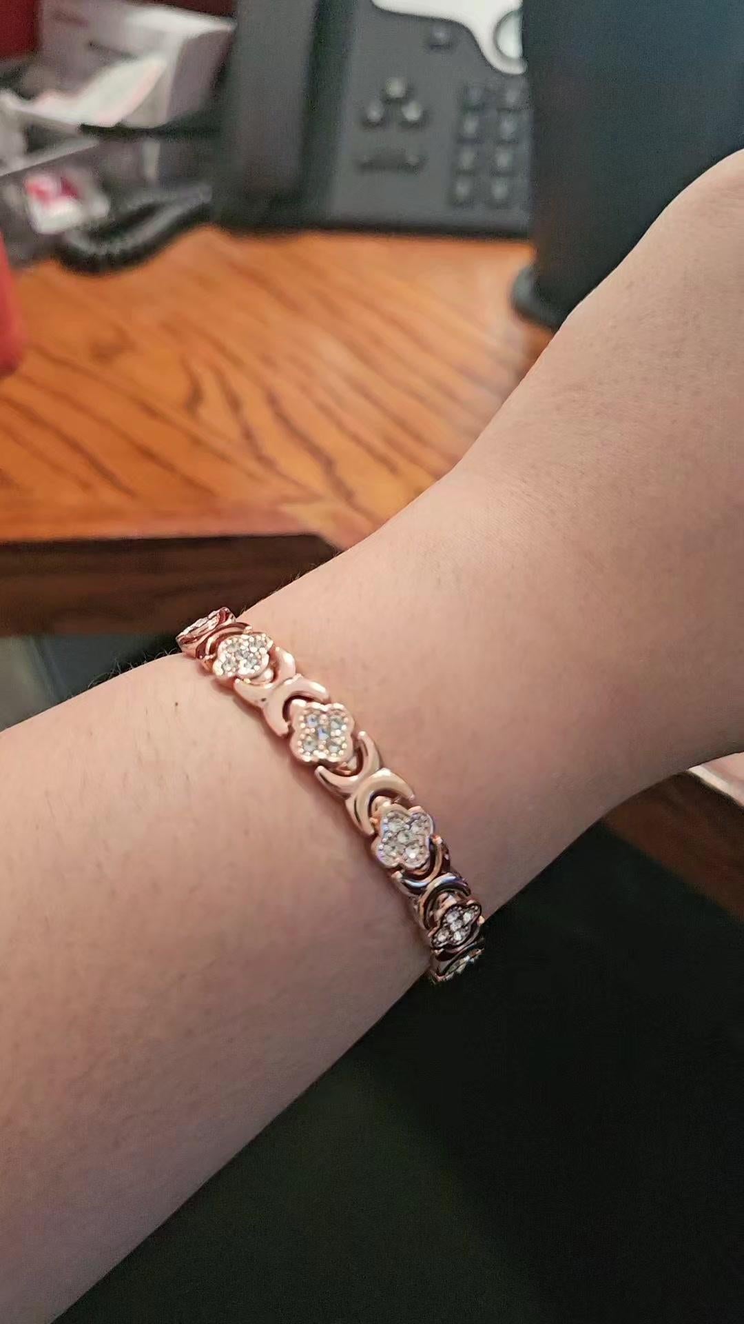 El dolor de rodillas que tenía al subir escaleras ya casi ni lo noto. Aparte la pulsera es súper elegante, parece de joyería buena.