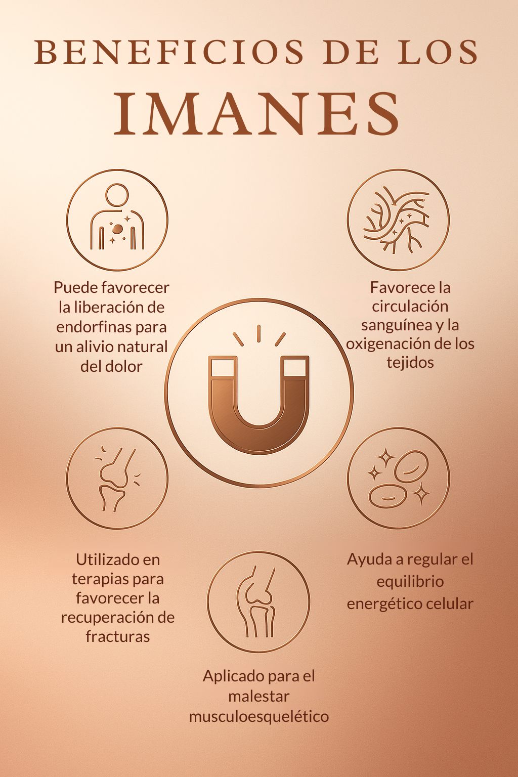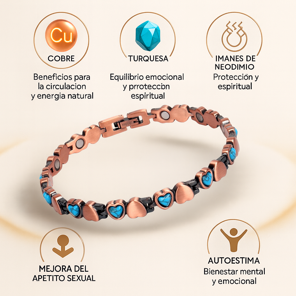 Nuestras pulseras magnéticas de cobre son para hombres y mujeres que buscan aliviar el dolor, mejorar su circulación y recuperar su energía. Son ideales para usar cada día: en el trabajo, al descansar, practicando deporte o en cualquier momento en que necesites equilibrio y bienestar sin perder elegancia.